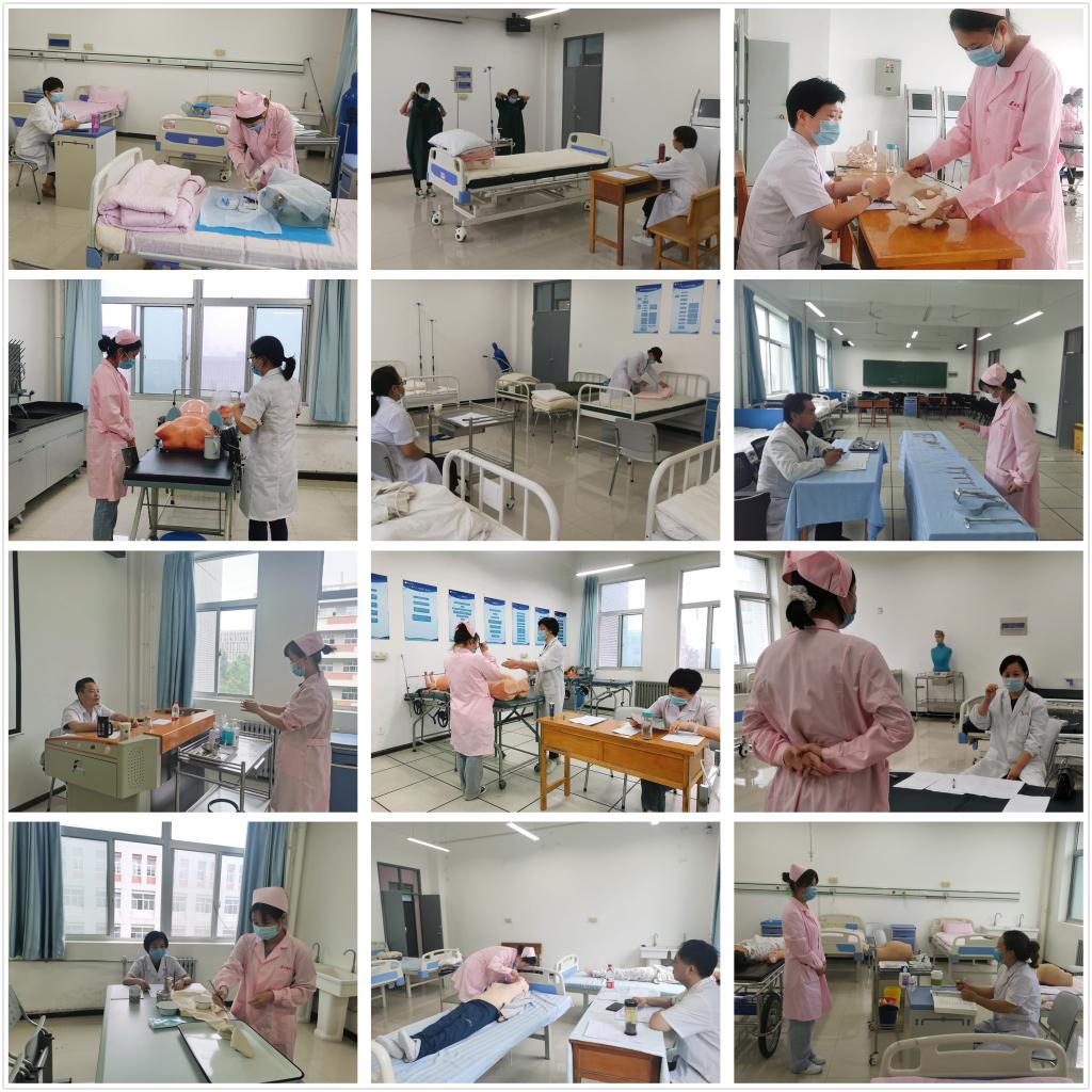 本次实践考核严格执行学校疫情防控相关规定,全程坚持“不扎堆,不聚集,全程佩戴口罩”,确保学生生命安全及身体健康。考核分为三个考段六组进行,分别对毕业生内科护理、外科护理、基础护理、妇儿护理相关技能进行考核。考前实训室组织教师按照考核要求进行了充分地用物准备。学生随机抽题后,每名学生用时10分钟左右,按要求进行相关操作。学生操作结束后,考核教师对学生进行提问并根据学生的操作规范程度和回答问题情况进行打分。