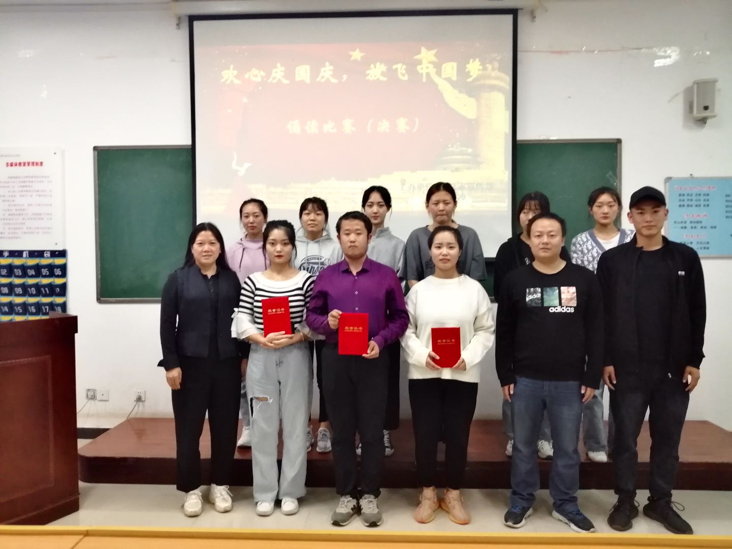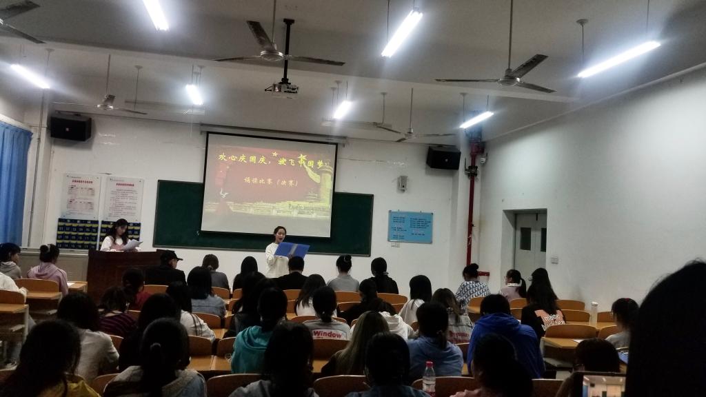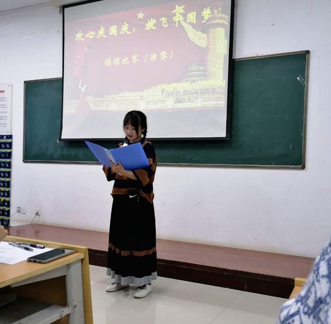 为弘扬中华传统文化,激励广大青年学生坚定信念,牢记美好生活来之不易。9月29日下午太阳集团1088vip在公共教学楼南楼105教室开展了“欢心庆国庆,放飞中国梦”诵读比赛决赛。太阳集团1088vip党总支副书记马淑红、办公室主任王剑、团总支副书记杜磊等10人担任评委。50余名学生代表观看了比赛。