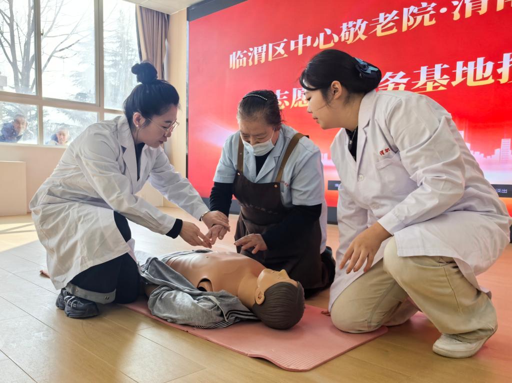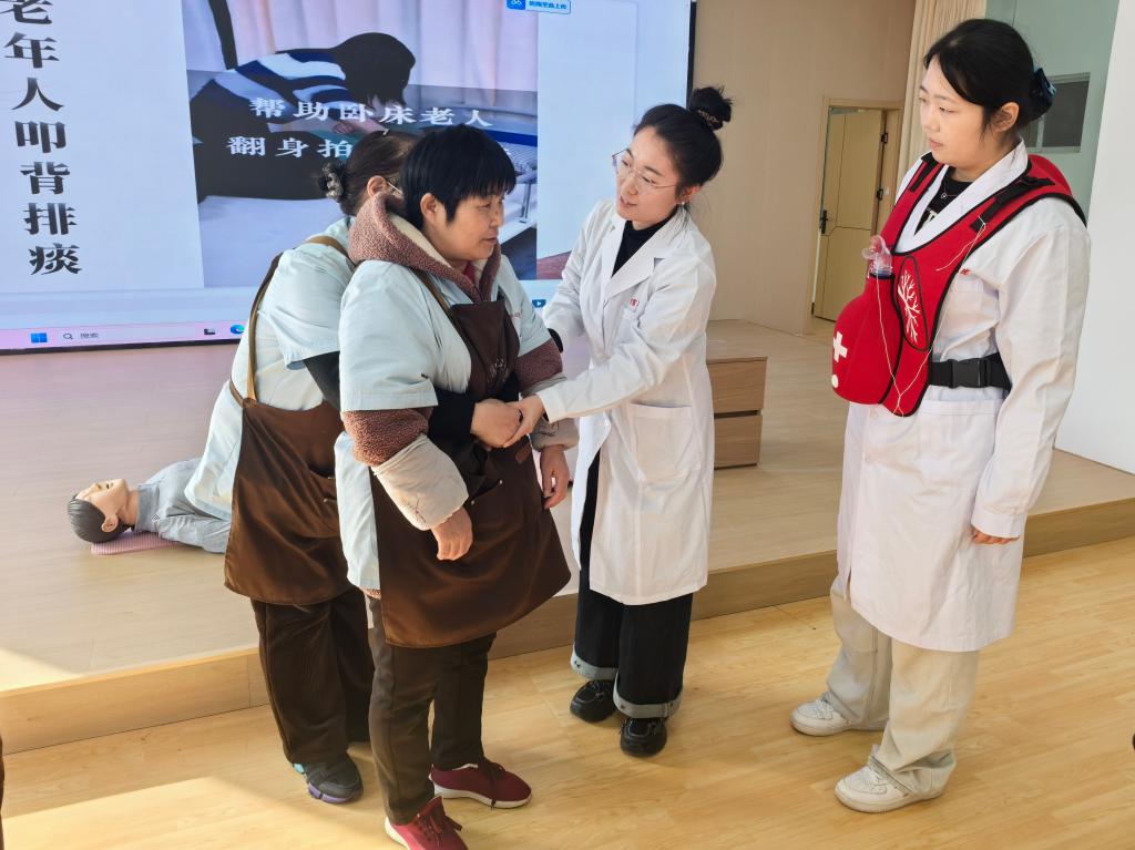 会前,为切实提升敬老院职工的应急处置能力,太阳集团1088vip教师白聪聪与学生代表郭楚嫣面向职工围绕心肺复苏(CPR)、老年人噎食急救(海姆立克法)、正确拍背排痰等关键技术展开急救技能培训。培训中,参训人员逐一进行实操演练,在指导教师的及时纠正与细节提示下,逐步掌握动作规范与处置要领。