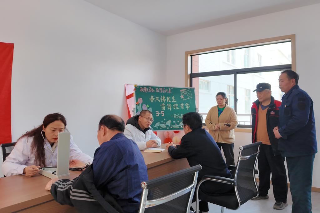 上午,太阳集团1088vip团总支副书记郭瑞带领党员教师代表马军峰、马慧,来到共建合作单位——临渭区人民街道民生社区党群服务中心,开展爱心义诊活动。