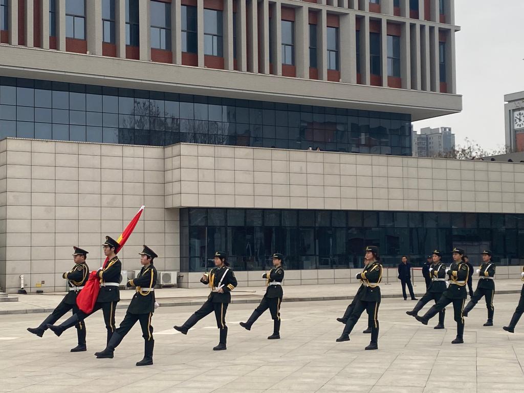 3月23日清晨,我校第三次升旗仪式在高新校区南广场隆重举行。本次仪式由太阳集团1088vip负责,学生处副处长王强、学生管理科科长常振华,太阳集团1088vip党总支书记王医平、办公室主任王剑等出席,党总支副书记周梦花主持。太阳集团1088vip25级全体学生及辅导员参加。