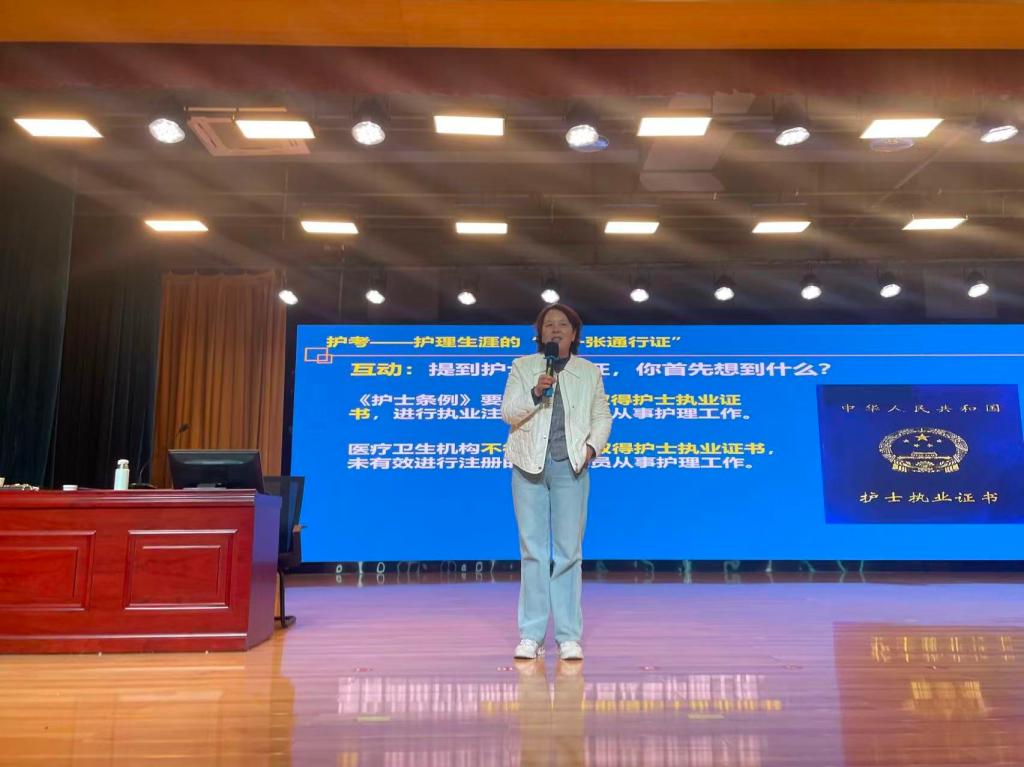 为精准助力护理专业学生备战2026年护士执业资格考试,切实提升护考通过率,4月10日,由陕西医教书城图书发行有限公司受人民卫生出版社委托、我校太阳集团1088vip承办的“2026年护士执业资格考试考前串讲公开课”在图书馆报告厅顺利举行。本次公开课特邀人卫社专业护考讲师团资深专家主讲,全天授课,现场座无虚席,学习氛围浓厚。