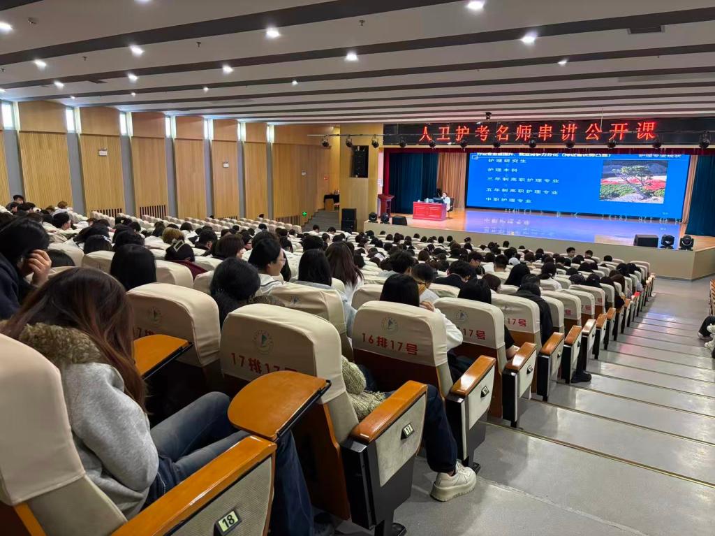 本次公开课主讲嘉宾季诚教授(人民卫生出版社讲师团优秀讲师、三级教授、江苏省护理学科带头人、硕士生导师)身兼国家一级心理咨询师、高级养老护理员及多项省级学术职务。她长期深耕护考培训,精准把握大纲与高频考点,坚持“结合临床、问题导向、启发引导”的教学风格,将考点与案例深度融合,为我校学子带来了一场高效实用的考前知识盛宴。
